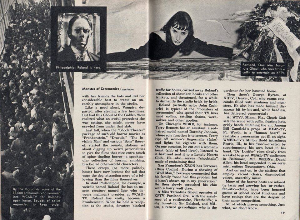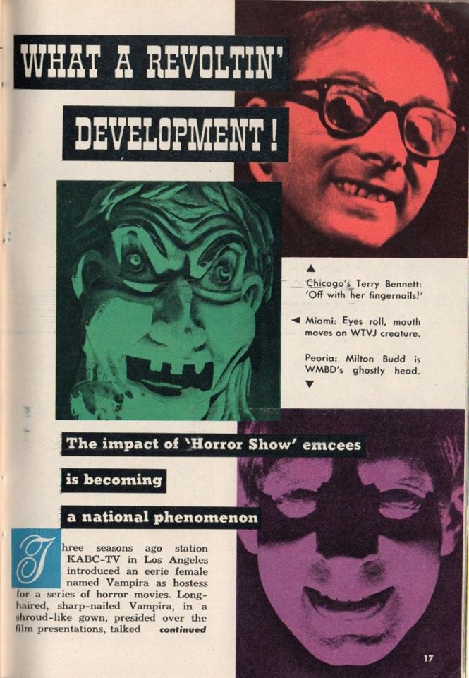 Jim Knusch's wonderful, archived TV Horror Hosts and Hostesses where you'll find their appearances in magazines. The March 29, 1958 TV Guide featured an article 'What a Revoltin' Development. Page two of Revoltin' Development.